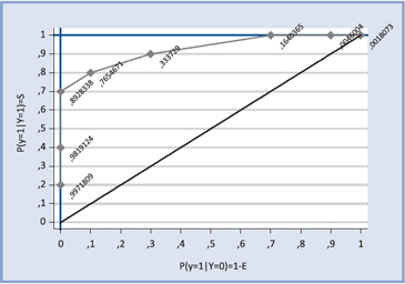 P(Y=1 | X ϵ A') =1-E: Falso Positivo. (1-E)