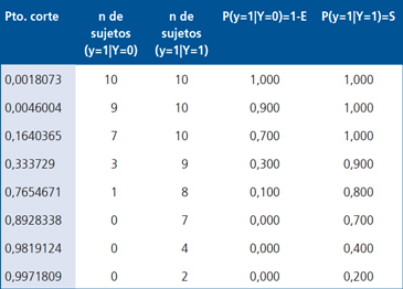 fórmula que al ser evaluada en cada observación entrega las siguientes probabilidades: