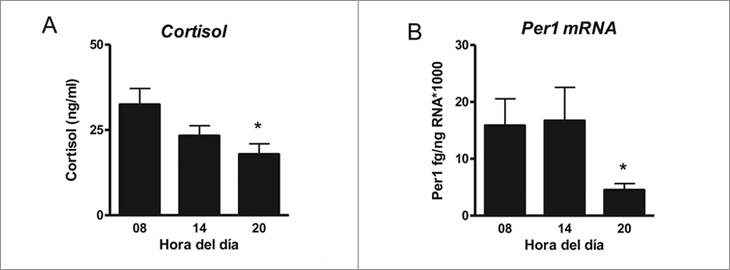 de cortisol y la expresión del gen reloj Per1 en respuesta