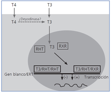 Figura 1. Mecanismo genómico de acción de las hormonas tiroideas