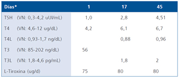 Tabla 3. Función tiroidea en los controles ambulatorios post hospitalización