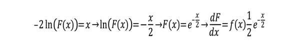 Un interesante resultado de la teoría de probabilidades para una variable continua, es que cualquiera sea el test estadístico que se utilice la transformación -2nl(F(p)), donde p es el p-value esta tiene una distribución c2 con 2 grados de libertad. Para probar esta afirmación basta recordar que la distribución c2 con dos grados de libertad tiene como función densidad de probabilidades la expresión: