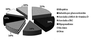 La osteoporosis del varón tiene una causa secundaria de 50%, a diferencia de lo que ocurre en la mujer postmenopáusica, donde ello no es mayor del 20-30%. En ausencia de una causa identificable la osteoporosis del varón es referida como idiopática en hombres entre 30-70 años y relacionada con la edad en > 70 años2,3.