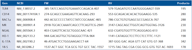 (PBMCs) como TLR-4, CD14, HO-1, RAC-1A, NGAL,