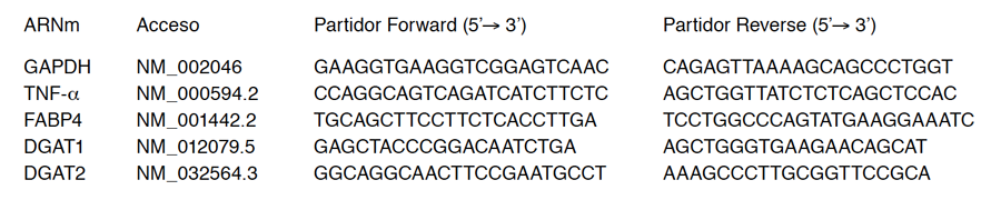 Efecto de los ácidos grasos AO/AP sobre la expresión de TNF-α Y FABP4