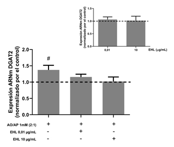 El EHL previene la inducción en la expresión de mRNA de DGAT2 mediada por AO/AP en hepatocitos HepG2