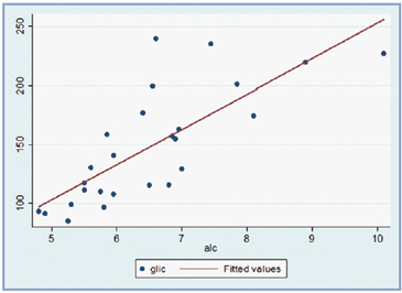 Figura 3. Correlación entre glicemias promedio y HbA1c en pacientes diabéticos.
