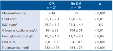 diabéticos tipo 2 (n = 21) y no diabéticos (n = 10); constituidos