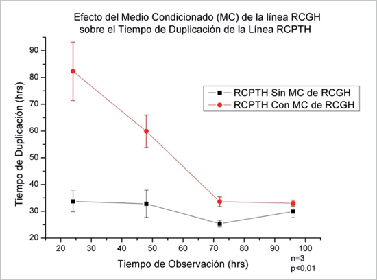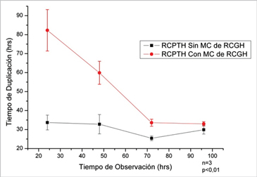 Figura 8. Tiempo de duplicación de la línea RCPTH con y sin exposición al medio