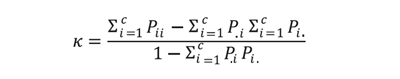 Con estos conceptos presentamos la fórmula del estadístico Kappa: