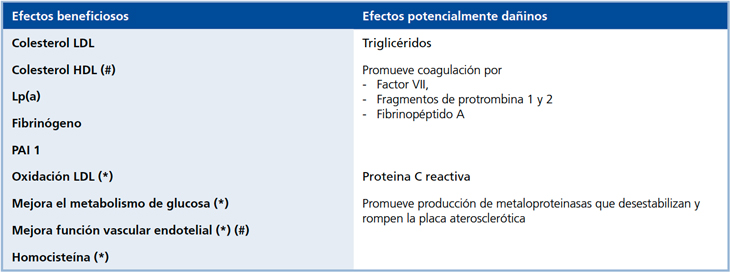 Tabla 3. Efectos beneficiosos y potencialmente dañinos de los estrógenos administrados por vía oral30.