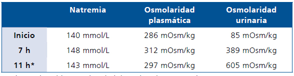 Tabla 1. Valores de natremia, osmolaridad plasmática y urinaria obtenidos durante la prueba de restricción hídrica