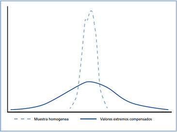 Figura 2. Representación de la distribución de una muestra homogénea y otra heterogénea