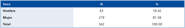 Tabla 1. Distribución por sexo.