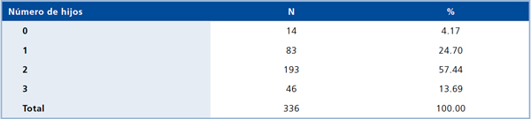 Tabla 2. Distribución del número de hijos de mujeres post menopáusicas.