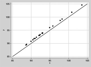 Otra solución insuficiente es creer que un coeficiente de correlación de Pearson cercano a 1 llevaría a concluir la concordancia. Este razonamiento es errado ya que el coeficiente de correlación de Pearson sólo evalúa el grado de asociación lineal entre dos variables continuas, en nuestro caso podríamos estar en presencia de dos medidas en que la segunda de ellas es la primera multiplicada por una constante a cuyo resultado se le suma otra constante y tendremos una correlación cercana a 1 y las medidas distintas.