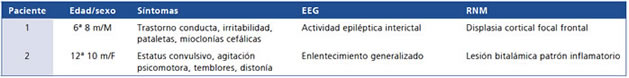 Tabla 1. Características clínicas, EEG e imágenes al momento del diagnóstico