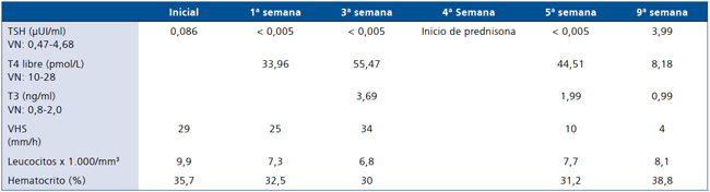 Tabla 1. Perfil tiroideo y hemograma durante el seguimiento