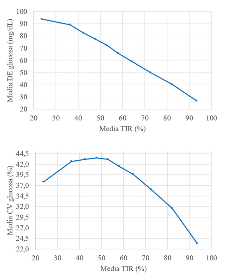 TIR 1-10: tiempo en rango (time in range), dividido por deciles.