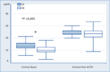 sin patología hipofisiaria y sin uso de fármacos que interfirieran en el metabolismo del cortisol (GS). En ambos