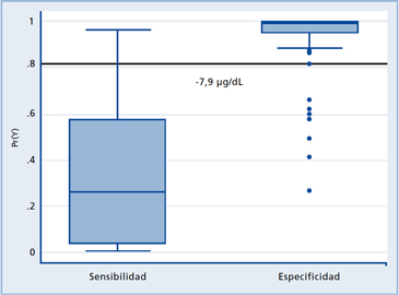 punto de corte, correspondiendo éste a 7,9 μg/dL, cifra