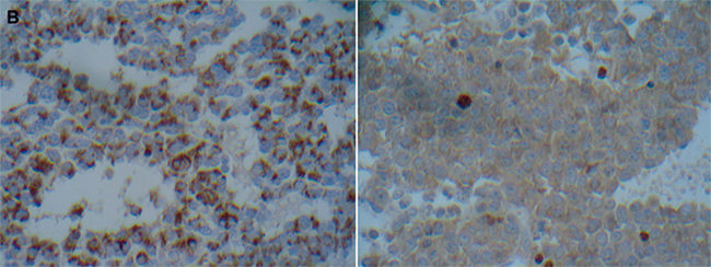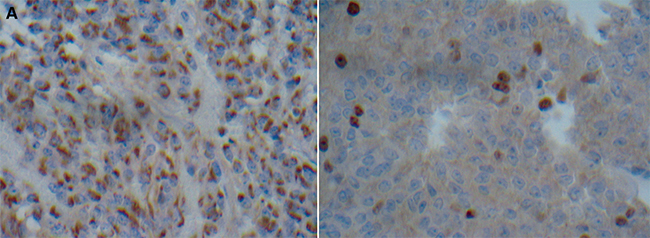 Figura 2. Inmunohistoquímica para prolactina y Ki-67 en casos 1 (A) y 2 (B).