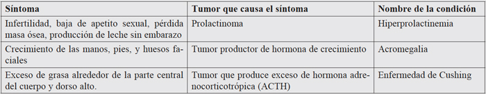 Algunos tumores hipofisiarios secretan hormonas. Si secretan en gran cantidad se llaman "hipersecretores". Un tipo común de tumor hipersecretor es el Prolactinoma, el cual produce un exceso de prolactina, una hormona que estimula la producción de leche después del parto y afecta a las hormonas sexuales.