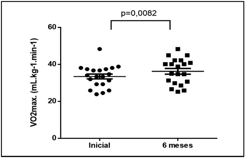 En una visita inicial, VO2 se estimó mediante Prueba de Step Test del American College Sport Medicine (ACSM) según Heydari et al23. Después de 6 meses, la estimación se realizó nuevamente.