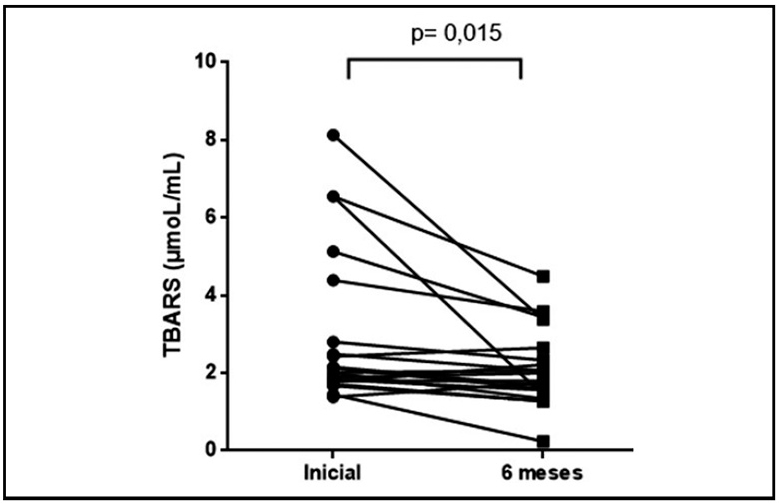 0.02) y TBARs (3.01 ±0.44 vs 2.12 ±0.22 μmol/mL p= 0.015) en comparación con