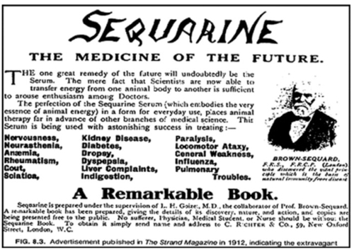 Keywords: Addison’s Disease; Brown-Séquard; Ductless Glands; Endocrinology; Insulin; Opotherapy; Organo-therapy; Substitutive Paradigm; Testicular Secretion; Testosterone; Thyroid Extracts.