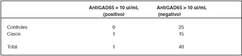 Análisis serológico: Se cuantificó la presencia de anticuerpos anti-GAD65, mediante inmunoensayo enzimático (ELISA) con el uso del kit comercial Anti-GAD ELISA, (Euroimmun, Germany) de acuerdo con las instrucciones del fabricante.
