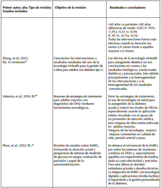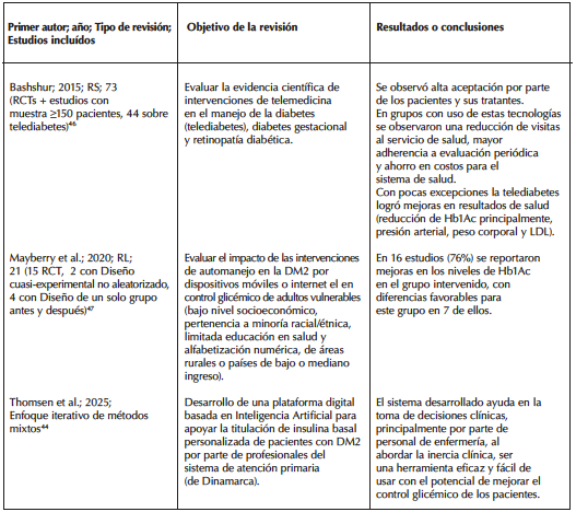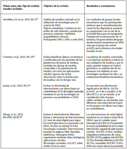 Tabla 2. Artículos de revisión sobre tecnología digital en diabetes mellitus tipo 2.